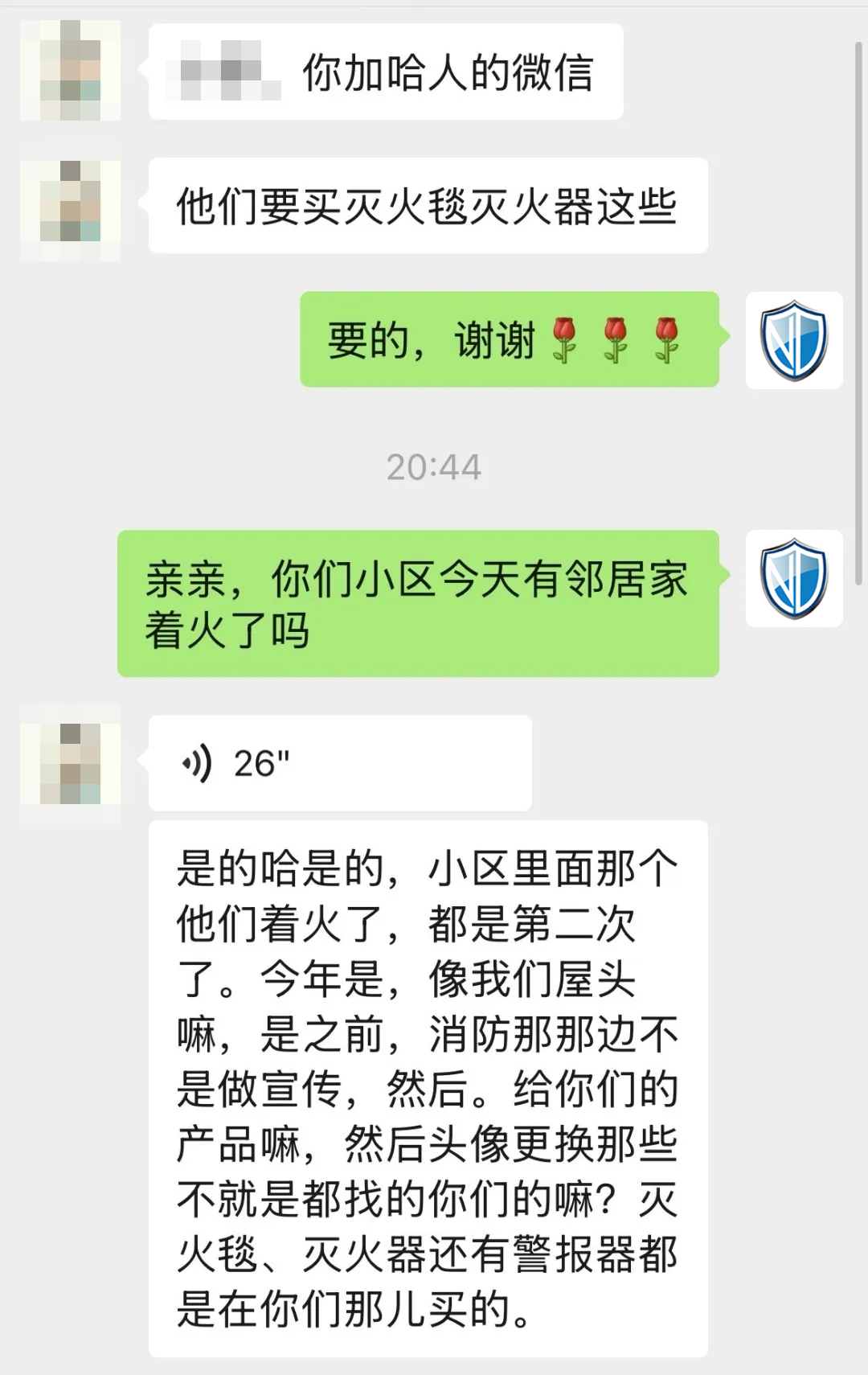 劉女士的分享很快引起了鄰居們的關(guān)注。王女士(化名)是第一個(gè)聯(lián)系安康諾盾客服的:“今年小區(qū)都發(fā)生兩起火災(zāi)了,家里還是準(zhǔn)備點(diǎn)滅火的器材,萬(wàn)一發(fā)生火災(zāi)還能用上,聽(tīng)了劉女士的介紹,立馬下單了一套?!?/strong>